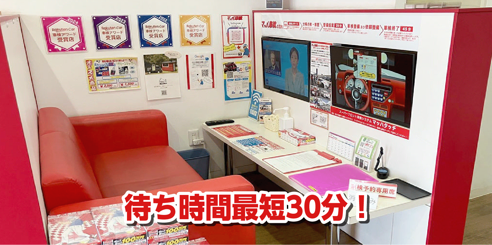 ご予約いただければあまりお待たせせずに作業にとりかかりますので、およそ30分程の待ち時間となります。お客様の混雑状況によっては多少前後することがございます。